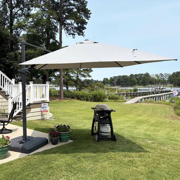 10 ft. Square Outdoor Patio Umbrella Cantilever Swivel Umbrella Aluminum Offset 360° Rotation Umbrella in Pebble Grey