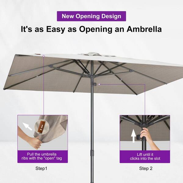 10 ft. Square Outdoor Patio Umbrella Gray Pole Market Table Sun Umbrellas with 8 Aluminum Sturdy Ribs in Beige