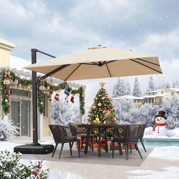 10 ft. Square Patio Umbrella Aluminum Large Cantilever Umbrella for Garden Deck Backyard Pool in Beige
