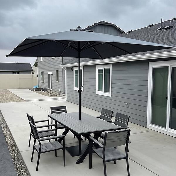 10 ft. Square Patio Umbrella Outdoor Table Umbrella Aluminum Frame Market Umbrella with 8-Sturdy Ribs, Light Gray