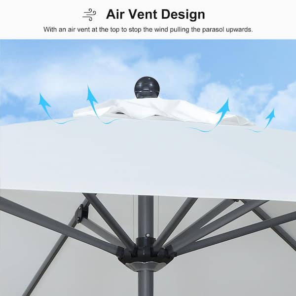 10 ft. Square Patio Umbrella Outdoor Table Umbrella Aluminum Frame Market Umbrella with 8-Sturdy Ribs, White