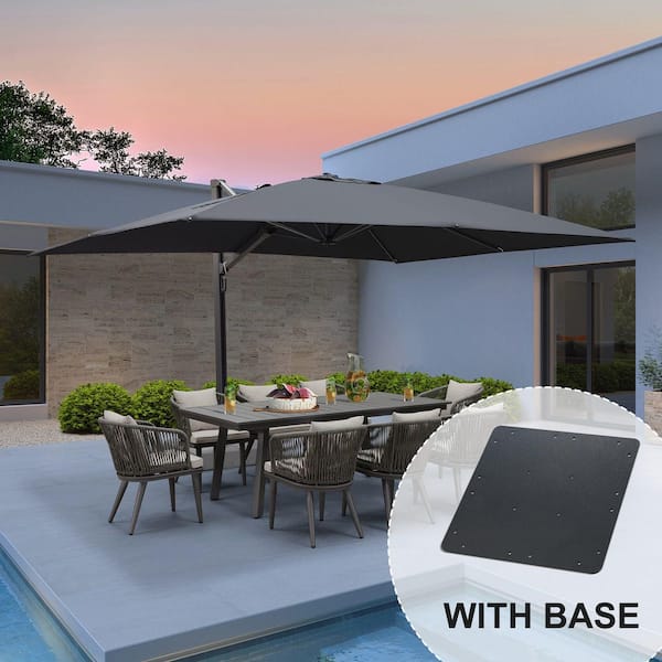 10 ft. x 13 ft. Aluminum Large Outdoor Cantilever 360° Rotation Patio Umbrella with Base Plate, Gray