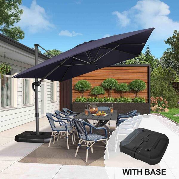 10 ft. x 13 ft. Cantilever Patio Umbrella with 360° Rotation for Garden Deck Pool with Base, in Navy Blue
