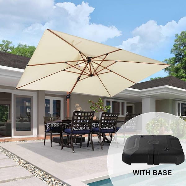 10 ft. x 13 ft. High-Quality Wood Pattern Aluminum Cantilever Patio Umbrella with Stand, Cream