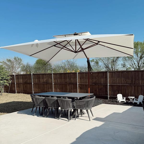 10 ft. x 13 ft. High-Quality Wood Pattern Aluminum Cantilever Patio Umbrella with Stand, Cream