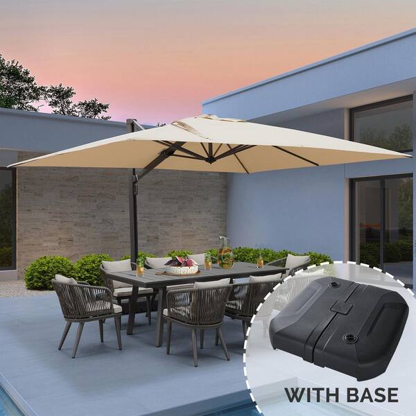 10 ft. x 13 ft. Large Outdoor Aluminum Cantilever 360-Degree Rotation Patio Umbrella with Base, Beige