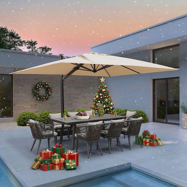 10 ft. x 13 ft. Patio Umbrella Aluminum Large Cantilever Umbrella for Garden Deck Backyard Pool in Beige