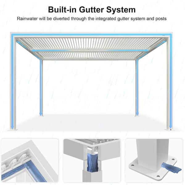 10 ft. x 13 ft. White Aluminum Frame Outdoor Louvered Pergola with Adjustable Sunshade Roof and Solar String Lights