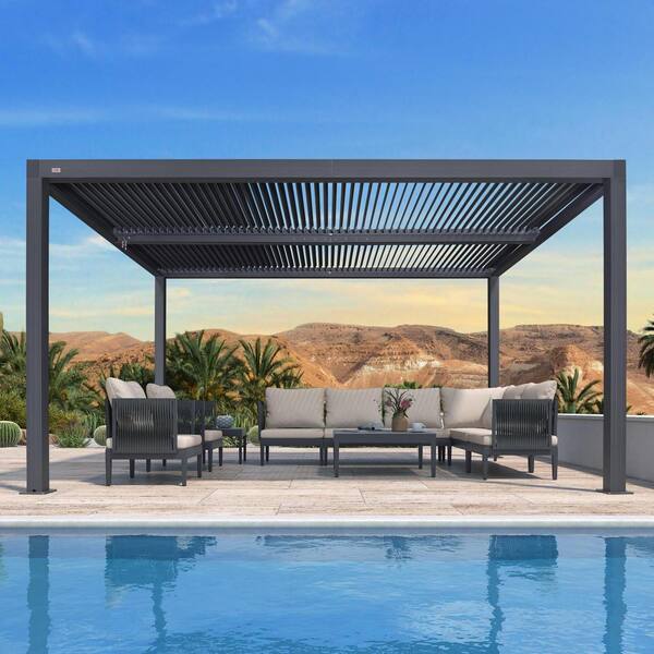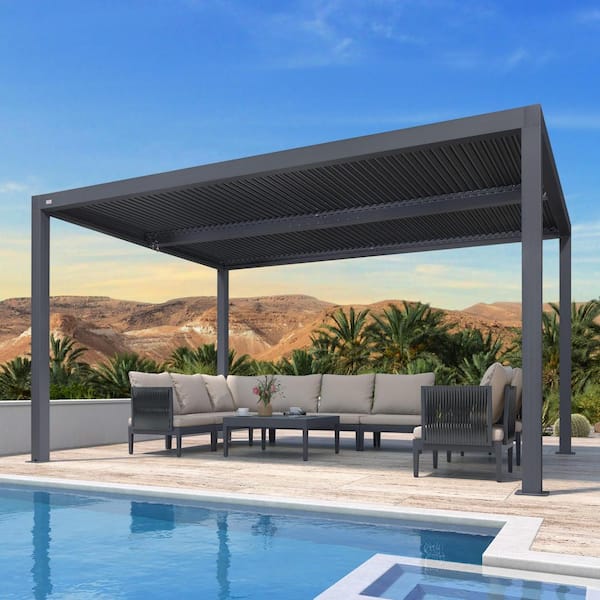 10 ft. x 14 ft. Gray Aluminum Frame Outdoor Patio Louvered Pergola Gazebo with Adjustable Sunshade Rainproof Roof