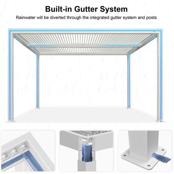 10 ft. x 14 ft. White Aluminum Frame Louvered Pergola with Adjustable Shade Roof and 1-Long 1-Short Side Roller Shades