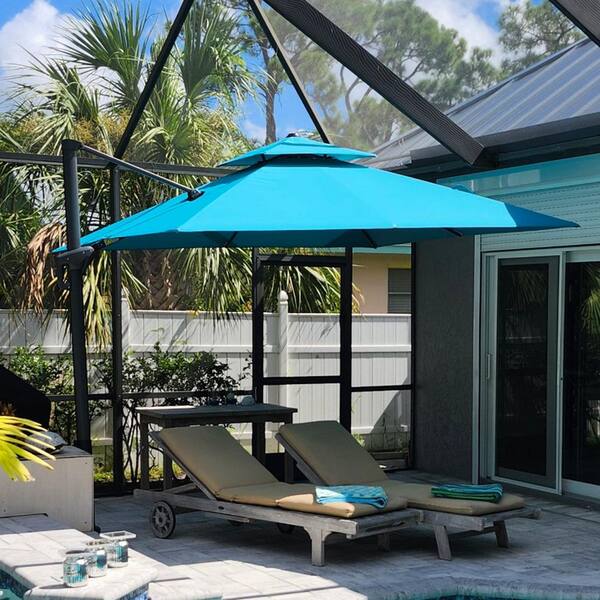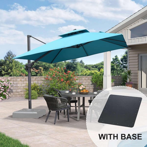 10 sq. ft. 2-Tier Aluminum Cantilever 360° Rotation Patio Umbrella with Base Plate, Turquoise Blue