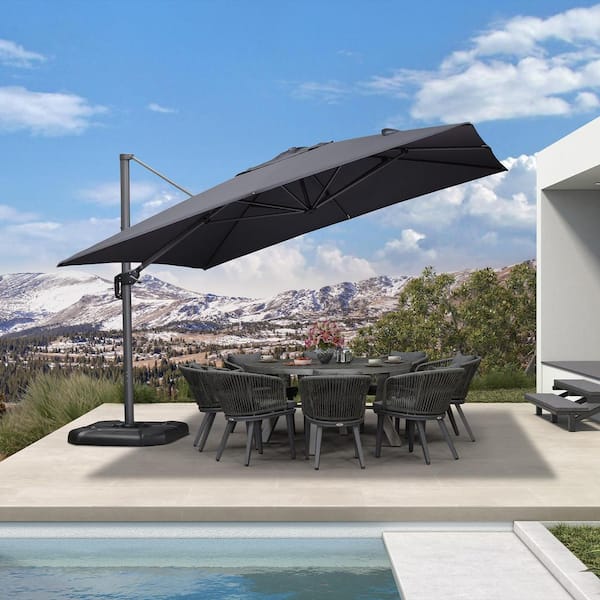 11.5 ft. Square Telescopic Patio Outdoor Cantilever Umbrella Up Down Lifting with 360° Rotation, Gray