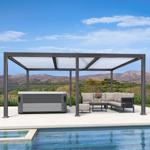 11.7 ft. x 18.2 ft. Gray Aluminum Outdoor Louvered Pergola with 3 White Individual Adjustable Roofs and In-Built Gutter