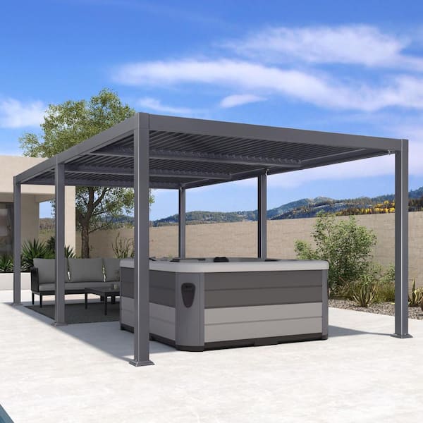 11.7 ft. x 21.2 ft. Gray Aluminum Outdoor Louvered Pergola with 3 Individual Adjustable Roofs and In-Built Gutter System