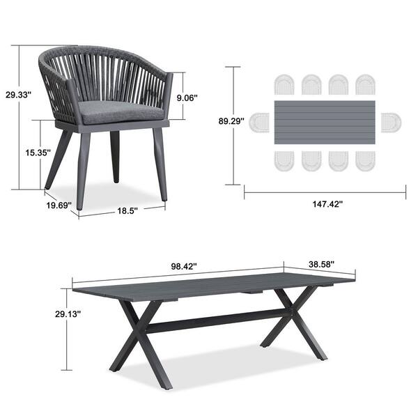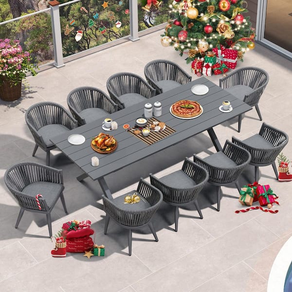 11 Piece Aluminum All-Weather PE Rattan Rectangular Outdoor Dining Set with Cushion, Grey