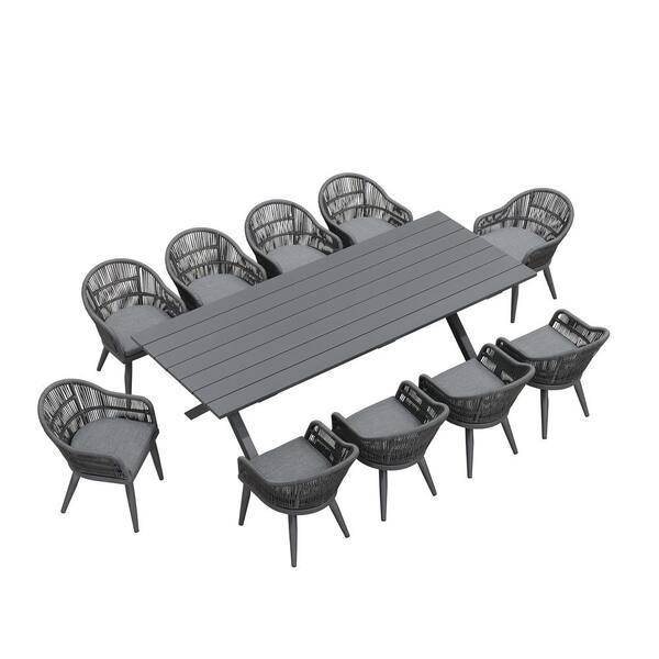 11 Piece Aluminum All-Weather PE Rattan Rectangular Outdoor Dining Set with Cushion, Grey