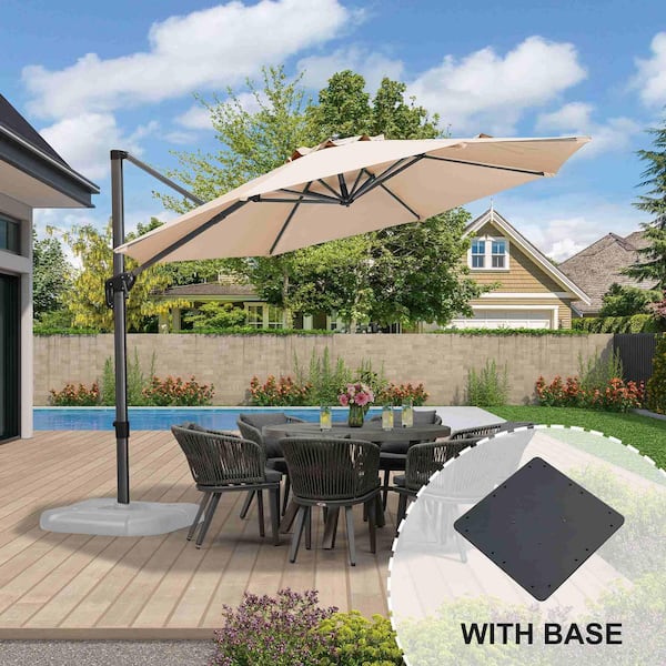 11 ft. Octagon Aluminum Outdoor Patio Cantilever Umbrella Offset 360-Degree Rotation Umbrella with Base Plate, Beige