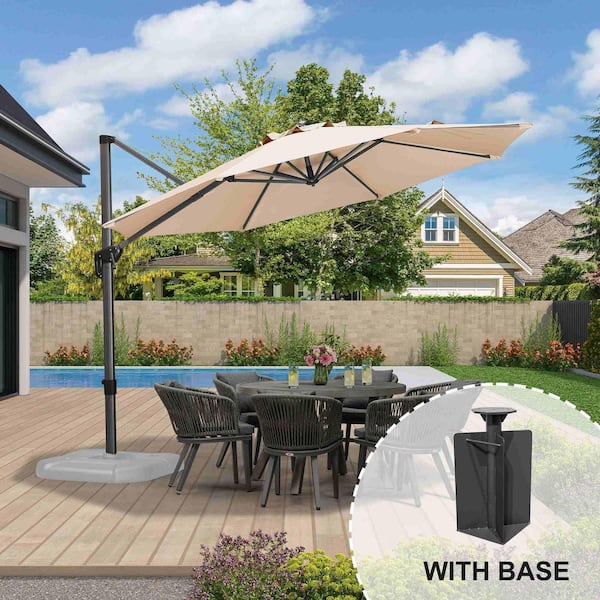 11 ft. Octagon Aluminum Outdoor Patio Cantilever Umbrella Offset 360-Degree Rotation Umbrella with Base in Ground, Beige