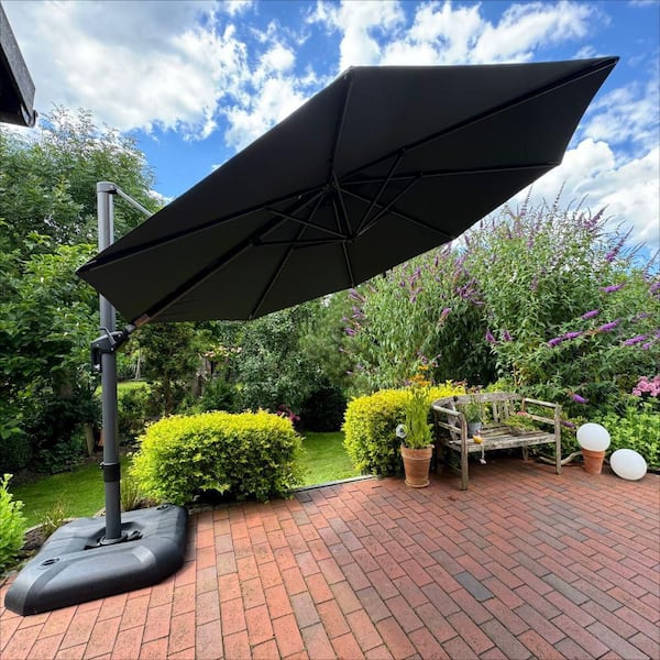 11 ft. Octagon Aluminum Outdoor Patio Cantilever Umbrella Offset 360° Rotation Umbrella with Base, Gray
