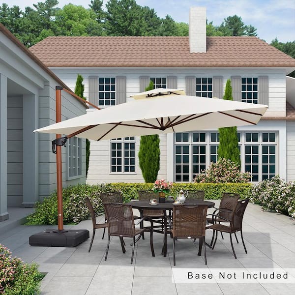 11 ft. Square All-aluminum 360° Rotation Wood pattern Cantilever Offset Outdoor Patio Umbrella in Cream