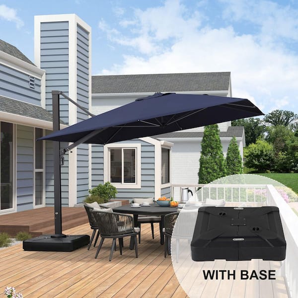 11 ft. Square Large Outdoor Aluminum Cantilever 360-Degree Rotation Patio Umbrella with Base, Navy Blue