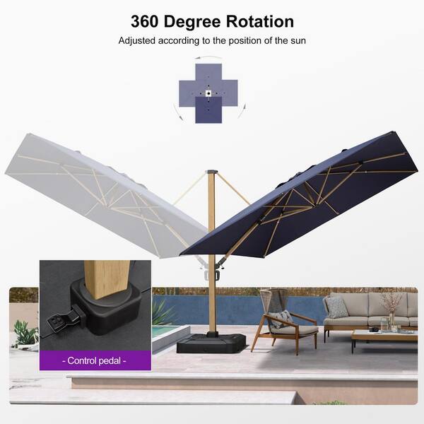 11 ft. Square Outdoor Patio Cantilever Umbrella Teak Finished Offset 360° Rotation Umbrella in Navy Blue