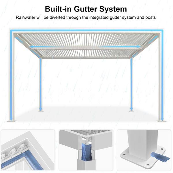 11 ft. x 13 ft. White Aluminum Louvered Pergola with Adjustable Sunshade Roofs and 1-Long 2-Short Side Roller Shade