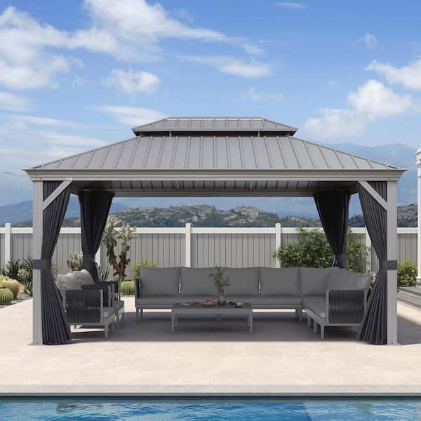 11 ft. x 15 ft. Luxury Aluminum Hardtop Gazebo Canopy for Patio Deck Backyard with Netting, Hooks, Upgrade Curtain