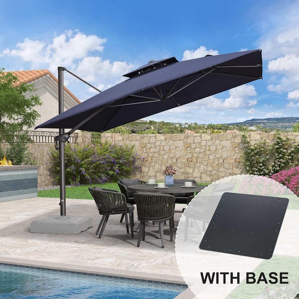 11 sq. ft. 2-Tier Aluminum Cantilever 360° Rotation Patio Umbrella with Base Plate, Navy Blue