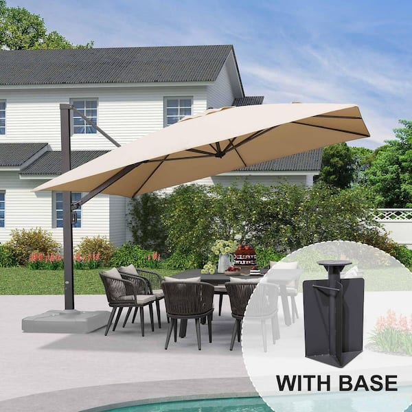 12 ft. Square Aluminum Large Outdoor Cantilever 360-Degree Rotation Patio Umbrella with Base in Ground, Beige