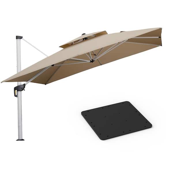 12 ft. Square High-Quality Aluminum Cantilever Outdoor Patio Umbrella with Base Plate, Beige