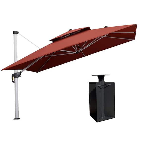 12 ft. Square High-Quality Aluminum Cantilever Outdoor Patio Umbrella with Base in Ground, Brick Red