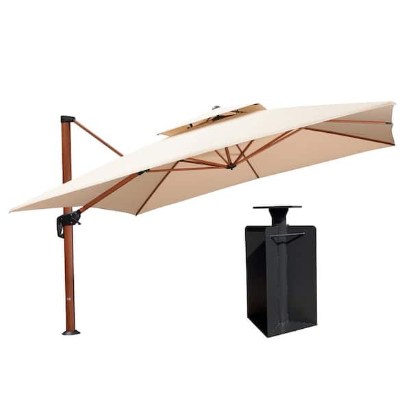 12 ft. Square High-Quality Wood Pattern Aluminum Cantilever Patio Umbrella with Base in Ground, Beige