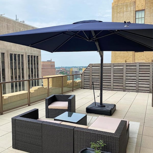 12 ft. Square Large Outdoor Aluminum Cantilever 360° Rotation Patio Umbrella with Base, Navy Blue