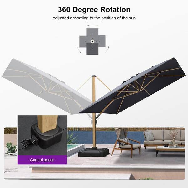 12 ft. Square Outdoor Cantilever Patio Umbrella Teak Finished Offset 360° Rotation Umbrella with Base, Gray