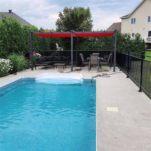 12 ft. W x 18 ft. D Outdoor Gray Aluminum Pergola with Two Individual Adjustable Red UV Resistant Sun Shelter Canopies