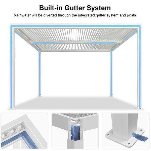 12 ft. x 12 ft. White Aluminum Louvered Pergola with 2 Adjustable Sunshade Roofs and 1-Short Side Fixed Shutter Wall