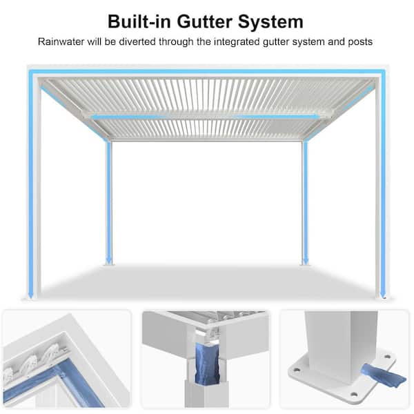 12 ft. x 12 ft. White Aluminum Louvered Pergola with 2 Individual Sunshade Roofs and 1-Long 1-Short Side Shutter Wall
