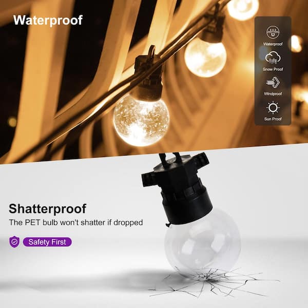 • Comes with shatterproof and weatherproof 24-foot 12-bulb