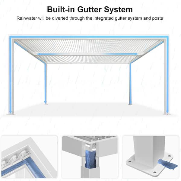 12 ft. x 16 ft. White Aluminum Louvered Pergola with 2 Adjustable Sunshade Roofs and 1-Short Side Fixed Shutter Wall