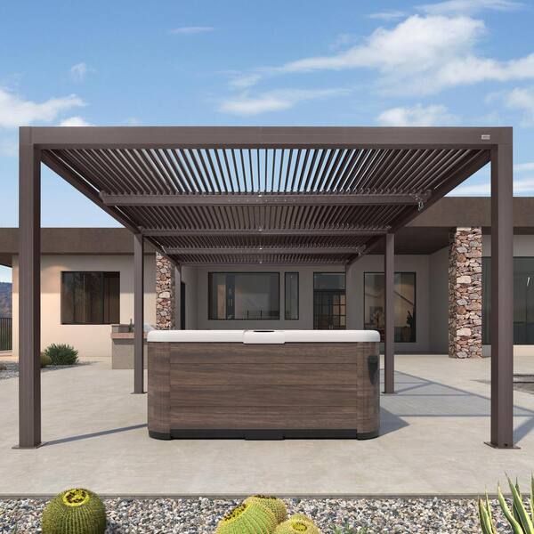 12 ft. x 20 ft. Bronze Aluminum Frame Patio Hardtop Louvered Pergola with Adjustable Sunshade Roofs and In-Built Gutter