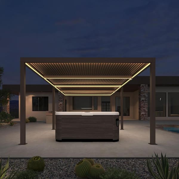 12 ft. x 20 ft. Bronze Aluminum Frame Patio Louvered Pergola Gazebo with Adjustable Sunshade Roof and LED Strip Lights