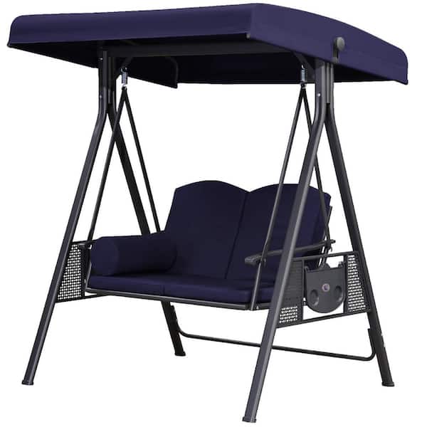 2-Person All-Weather Steel Frame Porch Swing Adjustable Tilt Canopy, Cushions and Pillow Included, Navy Blue