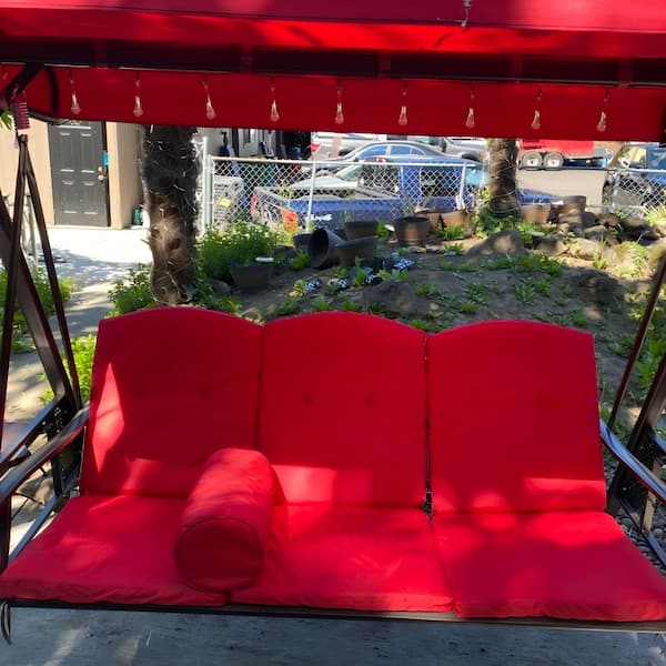 3-Person Steel Metal Patio Swing with Foldable Side Table, Canopy and Cushions, Terra