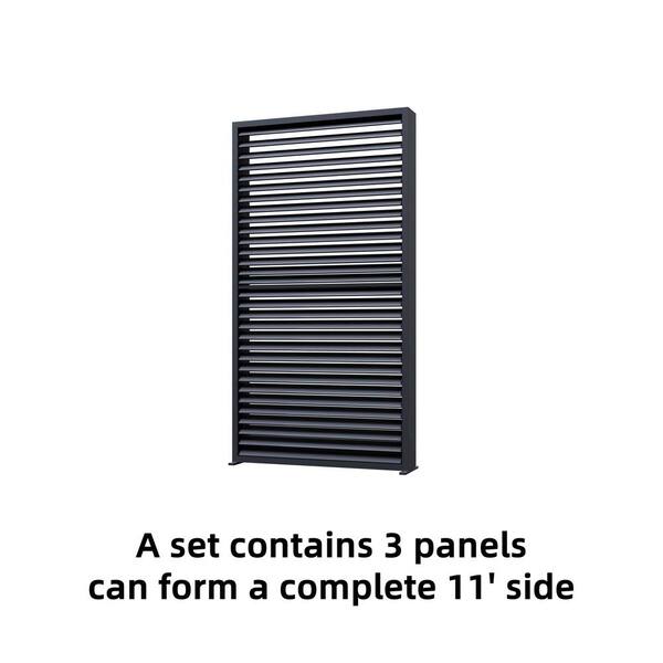 3-Piece All-aluminum Frame Sun Shade Privacy Fixed Shutter Wall Set for Gray Louvered Pergola 11 ft. One Side Wall