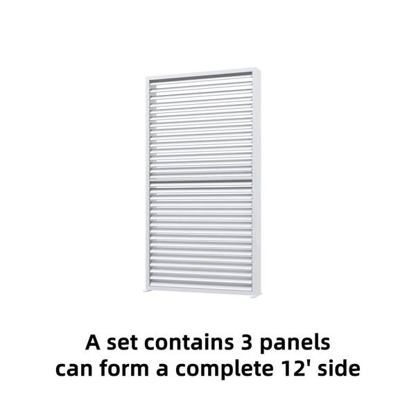 3-Piece All-aluminum Frame Sun Shade Privacy Fixed Shutter Wall Set for White Louvered Pergola 12 ft. One Side Wall