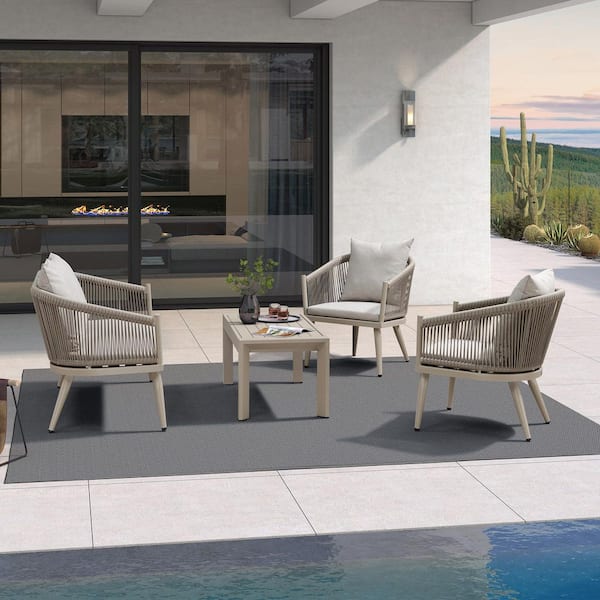4-Piece Aluminum All-Weather Wicker Patio Conversation Set with Thick Sofa Cushions, Champagne
