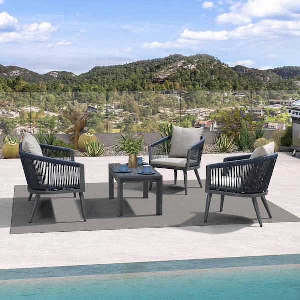 4-Piece Aluminum All-Weather Wicker Patio Conversation Set with Thick Sofa Cushions, Grey