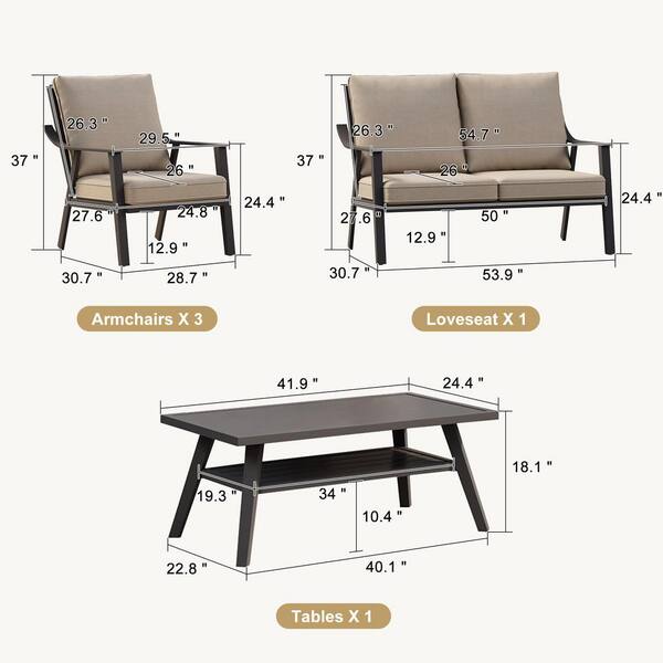 5 Pcs Patio Furniture Set with Thick Cushion Metal Patio Conversation Sets with 2 Armchairs & 2 Loveseats & Coffee Table