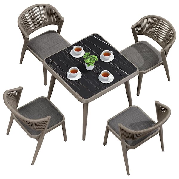 5-Piece All-Weather Wicker Outdoor Dining Set with All Aluminum Frame and Cushions for Lawn Garden Backyard Deck